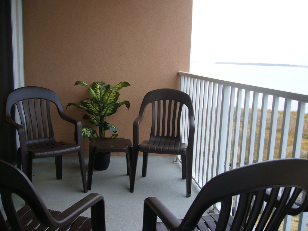 How about your own private balcony with a beautiful view of the Isle of Wight Bay. Have a seat on one of the balcony chairs and set your drink down on one of the balcony tables. Now your vacation begins!